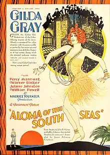 Aloma of the South Seas is a lost 1926 American silent comedy drama film starring Gilda Gray as an erotic dancer, filmed in Puerto Rico and Bermuda, and based on a 1925 play of the same title by John B. Hymer and LeRoy Clemens.[4][5]