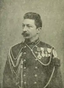 Alphonse van Gèle was born in Brussels on 25 April 1848.[1] He enlisted as a volunteer in the 8th Line Regiment in 1867, was made a sub-lieutenant in 1872 and became a lieutenant in the 3rd Line Regiment in 1878. He was appointed Adjoint d'État-Major (Deputy Chief of Staff) in 1881.[2]