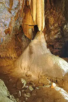 Amaterska Cave can be divided into 3 main parts: Sloupsky Corridor, Bila voda branch together with Old Amaterska cave and Macossky Corridor. Amatérská Cave can be entered by one natural entrance in Cikansky Sink Hole or through an artificial one under Konsky Spad in Pusty Zleb canyon.[2]