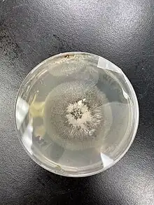 A. roeperi hyphae in culture on MYEA under a dissecting microscope