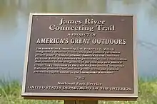 Plaque denoting the use of the Initiative to create a trail at Powhatan State Park in Virginia