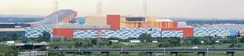 In June 2012, the Giants and the Jets sought an injunction against Triple Five from resuming construction after it took over the project from the Mills Corporation, stating that the addition of amusement and water parks at the site would adversely affect traffic at MetLife stadium on days when home games were played there,[57][58] specifically 16 Sundays out of the year, the day of the week that Bergen County's Blue Law prohibits shopping, though not amusement parks.[59] The teams contended that while the mall would be closed on Sundays, the amusement park would not, which would create traffic jams on game days, when between 20,000 and 25,000 vehicles would park at the complex. Traffic studies conducted by the team estimated that 7,700 spots would be added by the project, while developers stated that it would add only 63 more cars, as local residents would be wise enough to avoid the grounds at that time, and most tourists would take the rail link to the MetLife Stadium site rather than drive.[60][61] Triple Five objected to the law's restriction because it would infringe upon their business.[59] In July 2012 Triple Five countersued for what it called an improper campaign by the teams to preserve their monopoly at the site, while dissuading potential lenders from investing.[57][58] On March 12, 2014, the parties reached a tentative settlement, agreeing to drop their lawsuits. Though specific details of the agreement were not made public,[62][58] the agreement allowed the long-delayed project to move forward. Construction had been ongoing since November 2013, and was expected to pick up in early 2014. Although no timetable for completion was announced, the developer originally said it would take about 24 months to complete the project once construction began.[62] That April, Triple Five released a revised design for the mall's exterior and confirmed a tentative opening date in late 2016,[63] though by December 2014, it was reported that this would only be a partial opening.[64]