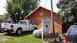 The American Legion Post No. 131 is a historic meeting hall on Center St. west of its junction with Walnut St., in Leslie, Arkansas. It is a single-story log structure, with a gable roof that extends over the front porch, with large knee braces in the Craftsman style for support. It was built in about 1935 with funding support from the Works Progress Administration (WPA). Its log styling is typical of the Rustic architecture used in WPA projects.[2]