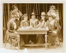 Stage Women's War Relief was founded in 1917 to organize charitable giving in support of the war effort.[1] Its founders, led by playwright and director Rachel Crothers, included the actress and playwright Louise Closser Hale and actresses Dorothy Donnelly, Josephine Hull, Minnie Dupree, Elizabeth Tyree and Louise Drew. The organization established workrooms for sewing uniforms and other garments (with total output totaling 1,863,645 articles), set up clothing and food collection centers, sold Liberty Bonds, and opened a canteen on Broadway for servicemen.[2] It also presented benefit performances to raise money, including some held in a temporary "Liberty Theater" built outside the New York Public Library.[3] In total, the group raised nearly $7,000,000 for the war effort.[4]