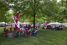 Alabama Crimson Tide football fans tailgating on the main campus of the University of Alabama. College football is particularly popular in the southeastern United States