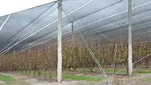 Apple trees under netting to protect them from hail, Amiens, 2015