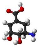Aminoshikimic acid is an intriguing alternative to shikimic acid as a starting material for the synthesis of neuraminidase inhibitors such as the antiinfluenza agent oseltamivir.[3] Aminoshikimic acid is also a versatile chiral starting material for the synthesis of new pharmaceuticals. As with shikimic acid, aminoshikimic acid is an attractive candidate for use as the core scaffold for synthesis of combinatorial libraries.