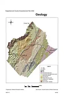 Geological map of Rappahannock County, with the village of Amissville shown on the far right