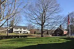 The Amos Fuller House stands in what is now a residential area of central Needham, on the northeast side of Nehoiden Street nearly opposite its junction with Newell Avenue. It is set well back from the road on a parcel over 3 acres (1.2 ha) in size, with a 19th-century barn to one side. The house is a 2+12-story wood-frame structure, with a side-gable roof. An ell extends to the rear, and an enclosed porch extends to the side. The rear right side of the house includes a "Beverly jog", or projecting section that extends part of the rear roof line. The house originally had a central chimney, which was removed in the late 19th century.[2]