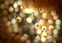 Amphimedon queenslandica stores embryos in its brood chamber.[2] The image is about 4 mm wide.