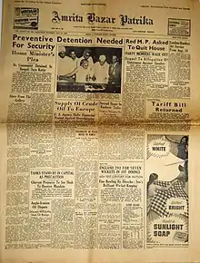 - 1 2 Misra, Shubhangi (14 August 2021). "Amrita Bazar Patrika — fiery newspaper took on British but then came a tame turn, and tragedy". The Print. Retrieved 7 October 2022.