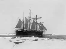 After leaving the Bay of Whales on 15 February 1911, Fram sailed for Buenos Aires where she arrived on 17 April.[156] Here, Nilsen learned that the expedition's funds were exhausted; a sum supposedly set aside for the ship's needs had not materialised. Fortunately, Amundsen's friend Don Pedro Christopherson was at hand to fulfil his earlier promises to provide supplies and fuel.[157] Fram departed in June for an oceanographic cruise between South America and Africa, which occupied the next three months.[158] The ship returned to Buenos Aires in September for final refitting and re-provisioning, before sailing south on 5 October. Strong winds and stormy seas prolonged the voyage, but the ship arrived at the Bay of Whales on 9 January 1912.[159] On 17 January the men in Framheim were surprised by the appearance of a second ship; it was the Kainan Maru, carrying the Japanese Antarctic Expedition led by Nobu Shirase.[160] Communication between the two expeditions was limited by language difficulties, though the Norwegians gathered that the Japanese were heading for King Edward VII Land.[161] Kainan Maru departed the next day, and on 26 January she landed a party on King Edward VII Land. This was the first landing on this shore from the sea; attempts by Discovery (1902), Nimrod (1908) and Terra Nova (1911) had all failed.[162]