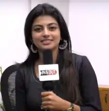Anandhi (born Rakshita;[1] 9 December) is an Indian actress who primarily appears in Tamil and Telugu films. After her debut in the Telugu film Bus Stop (2012), she appeared in Vetrimaaran's Tamil production Poriyaalan (2014) and Prabhu Solomon's Kayal (2014). She won Special Prize for Kayal at the Tamil Nadu State Film Awards.[2]