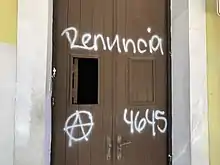 Even though no group publicly advocated in its favor during the unrest that lead to the resignation of Ricardo Rosselló in July 2019, the circle-A was ubiquitously found among other protest graffiti painted throughout Old San Juan.