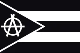 Flag employed by some local anarchists. It combines the flag of Puerto Rico with two prominent elements of anarchist symbolism, the black flag and the circle-A.