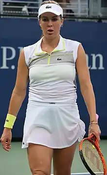 Anastasia Sergeyevna "Nastia" Pavlyuchenkova[3] (Анастаси́я «Настя» Серге́евна Павлюче́нкова; born 3 July 1991) is a Russian professional tennis player. A junior prodigy, Pavlyuchenkova won three Grand Slam titles and became the junior world No. 1, in January 2006, at the age of 14. She continued her success after turning professional, reaching a career-high singles ranking of world No. 11 on 8 November 2021.[4]