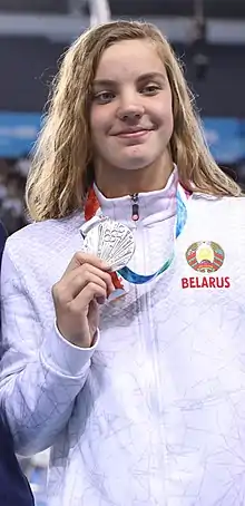 Anastasiya Shkurdai (Belarusian: Настасся Шкурдай, romanized: Nastassya Shkurday; born 3 January 2003)[2] is a Belarusian swimmer. She represented Belarus at the 2019 World Aquatics Championships in Gwangju, South Korea and she competed in the 4 × 100 metre mixed medley relay event.[2][3]