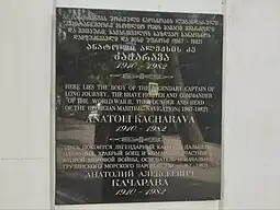 Anatoli Kacharava (Georgian: ანატოლი კაჭარავა, 15 August, 1910 – 8 May, 1982) was a Soviet and Georgian sea captain serving in the Soviet Navy. He is known for taking part in the arctic theater of the Second World War where he commanded a Soviet icebreaker A. Sibiryakov until its destruction by a German cruiser Admiral Scheer on August 24, 1942. Kacharava was severely wounded but survived, and was one of 22 of the ship's company that were captured by the Germans.
