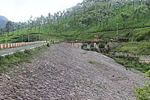 Anayirangal Dam (Malayalam: ആനയിറങ്കൽ അണക്കെട്ട്) is an earthen dam built on the Panniyar river in Chinnakanal and Santhanpara panchayats, 22 km (14 mi) from Munnar in Idukki district of Kerala, India.[1] The dam is surrounded on one side by forest and on the other by Tata Tea Plantation. The dam is located near the Munnar - Kumily road. The water flowing from the dam reaches Kuthungal and Ponmudi dams through the Panniyar river. Power is generated at Kuthungal and Panniyar powerhouses. The dam stores water from small streams flowing from Bealram and rainwater flowing from the hills on the Tamil Nadu border. The reservoir usually fills up in June and July.[2] The height of the dam is 34.14 metres (112.0 ft) and Length is 326.13 metres (1,070.0 ft).