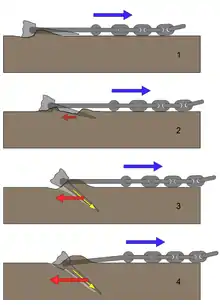 A plough anchor has a fundamental flaw: like its namesake, the agricultural plough, it digs in but then tends to break out back to the surface. Plough anchors sometimes have difficulty setting at all, and instead skip across the seafloor. By contrast, modern efficient anchors tend to be "scoop" types that dig ever deeper.