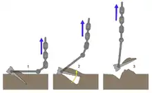Holding ground is the area of sea floor that holds an anchor, and thus the attached ship or boat.[3] Different types of anchor are designed to hold in different types of holding ground.[4] Some bottom materials hold better than others; for instance, hard sand holds well, shell holds poorly.[5] Holding ground may be fouled with obstacles.[5] An anchorage location may be chosen for its holding ground.[6] In poor holding ground, only the weight of an anchor matters; in good holding ground, it is able to dig in, and the holding power can be significantly higher. The word "anchor" is sometimes used as British slang for the brakes on a car.