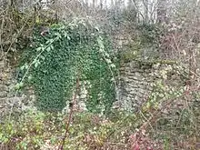 The fortification was surrounded by a stone wall, around which there was a 1.5 metres (4 ft 11 in) walkway, then a large U-shape ditch up to 11.3 metres (37 ft) wide.[9] It was thought by Debord that there may have been a second moat, but this has been shown to be incorrect.[3] The surrounding woods contained oak, beech and maple, which were used indiscriminately for fuel. The woods had clearings for pasture or crops.[6]