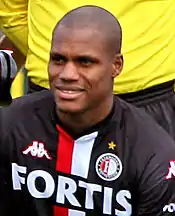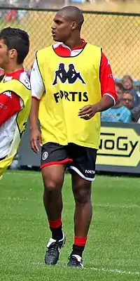 In the 2005–06 season, Bahia became a first team regular for the side under the management of Erwin Koeman and formed a centre–back partnership with Serginho Greene.[33] Bahia made his UEFA Cup debut against Rapid București in the first leg of the tournament and started the whole game, in a 1–1 draw on 15 September 2005.[34] Three days later on 18 September 2005, he scored his first goal of the season, in a 5–1 win over Heerenveen.[35] However in the return leg, Bahia started the whole game, as Feyenoord lost 1–0, resulting in the club's elimination in the UEFA Cup.[36] Two months later, on 20 November 2005, he scored his second goal of the season, in a 3–2 win over Roda JC.[37] On 15 January 2006, Bahia scored his third goal of the season, in a 1–0 win over Vitesse.[38] Along with new signing Ron Vlaar, they helped Feyenoord keep a clean sheet in the next two matches against Roda JC and Heracles Almelo.[39] This proved to have worked, as they formed a centre–back partnership with for the rest of the 2005–06 season.[40] Throughout the season, Bahia played every league match until he was sent–off for a second bookable offence, in a 1–0 loss against rivalsAjax in the first leg of the play-offs round.[41] As a result, Bahia missed one match, as the club went on to lose 7–2 on aggregate.[42] Despite the loss, his contributions at Feyenoord saw the club qualify for the UEFA Cup next season.[43] At the end of the 2005–06 season, he went on to make thirty–seven appearances and scoring four times in all competitions.