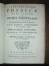 These Latin physics textbooks each contain eight plates with descriptions and images of a variety of contemporary physics devices including manometers (fluid statics), lenses/prisms (refraction), and various simple machines.[13][14][15] Coverage of electricity is relatively sparse, although many other diverse topics are surveyed, including mechanics, magnetism, celestial mechanics, fluid drag experiments, mineralogy, and human anatomy.[16][17][18] Extensive bibliographical references are provided.[19][20]