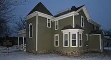 The 1878 home is a wood-frame structure with a large two-story stairwell tower that was added on by Volstead shortly after he purchased the property in 1894. During Volstead's time, the first floor had a large screened porch; this has now been replaced by an open porch. The interior is adorned with oak woodwork and stained glass.[5] Volstead moved to a new home in Granite Falls in 1930.[5] The first Volstead House remained privately owned until 1974, when it was listed on the National Register and converted into a historic house museum. Five years later it was donated to the city.[4]