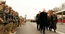 Bērziņš reviewing American and Polish soldiers during the 2014 Latvia Day Parade.