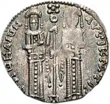 Silver basilikon depicting Andronikos II and Michael IX