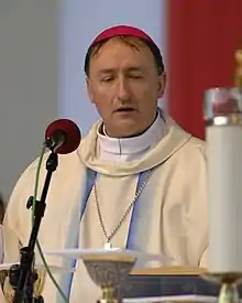 On 20 October 2009, Jeż was appointed by Pope Benedict XVI as auxiliary bishop of the Diocese of Tarnów, as well as the titular bishop of Tigillava.[4] He was ordained a bishop on 28 September 2011 in the Cathedral Basilica of the Nativity of the Blessed Virgin Mary, with the consecrator being the former bishop of Tarnów, Wiktor Paweł Skworc, with the co-consecrators cardinal Stanisław Dziwisz, archbishop of Kraków, and Józef Kowalczyk, archbishop of Gniezno.[1] Jeż choose "Ad Laudem Trinitatis Et Deiparae" (To the praise and the Holy Trinity) as his bishops motto.[5]