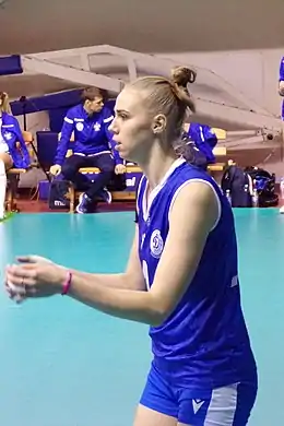 Angelina Vadimovna Lazarenko (Russian: Ангели́на Вади́мовна Лазаре́нко, IPA: [ɐnɡʲɪˈlʲinə vɐˈdʲiməvnə ləzɐˈrʲenkə]; born 13 April 1998) is a Russian volleyball player, a member of the Russia women's national volleyball team. Since the 2019/2020 season, she has played for Dinamo Krasnodar.[1][2]
