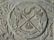Coat of arms of Anjoman-e Okhovat engraved on a gravestone in Shahreza, Isfahan Province. Photo taken in 2009