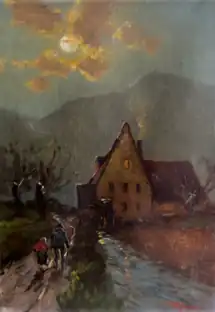 Anna Klein (16 February 1883 in Nuremberg – 25 November 1941 in Kaunas) was a German landscape, animal and genre painter. She specialized in motifs from Upper Bavaria and Tyrol and designed many utilitarian items such as labels, bookplates and postcards in addition to her canvases. A large number of her paintings may be found at the Gemäldegalerie Dachau, where a retrospective was held in 2008.