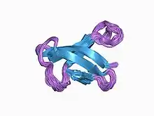 - 1 2 Campos-Olivas R, Bruix M, Santoro J, Lacadena J, Martinez del Pozo A, Gavilanes JG, Rico M (March 1995). "NMR solution structure of the antifungal protein from Aspergillus giganteus: evidence for cysteine pairing isomerism". Biochemistry. 34 (9): 3009–21. doi:10.1021/bi00009a032. PMID 7893713.