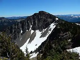 Antler Peak[2] is a 7,017 feet (2,139 m) summit located in Mount Rainier National Park in Pierce County of Washington state. It is part of the Sourdough Mountains, a subset of the Cascade Range. Antler Peak is situated west of Dege Peak and northeast of Sunrise Historic District, with the Sourdough Ridge Trail traversing the south slope of Antler between the two. Mount Fremont is its nearest higher peak, 1.55 mi (2.49 km) to the west.[1] Precipitation runoff from Antler Peak drains into the White River.