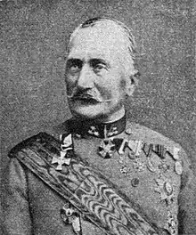 In 1868 he was promoted to lieutenant general, was initially employed as a "national defense commander" in Innsbruck and in 1870 was appointed Kommandierender General of the XIII Corps and chief of administration in the Croatian-Slavonian border region transferred to Agram. On April 23, 1873, he was promoted to Feldzeugmeister. He did not receive the supreme command of the Bosnian campaign that he expected, because his views on an Austrian Greater Croatia made him politically unpopular with the Hungarians and especially with the Foreign Minister Gyula Andrássy and he was sidelined. In 1877 he was appointed commanding general to the IX Corps after Brno and the following year for the XI Corps transferred to Lemberg.[3][2]
