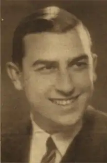 In terms of drama Pérez de Olaguer underwent internship period in the early 1930s; working for Enrique Rambal he co-adapted novels for stage performance, tasked with providing intriguing episodic dramas which merged high action with musical interludes.[46] Likewise he adapted his own novel into a 3-act play (1933),[47] which was actually staged.[48] His greatest success as a playwright came with Más leal que galante (1935), written together with Benedicto Torralba de Damas. Set in the Third Carlist War and written in a light verse, the comedy featured a complex romance intrigue with clear Carlist message in the background;[49] its popularity stemmed from smart and pacy intrigue, well-written rhymed dialogues and a blend of romantic and patriotic features. The play was performed countlessly especially in the Nationalist zone[50] and later in the Francoist Spain;[51] there were great Spanish actors like Carmen Díaz starring[52] and great political personalities like Queipo de Llano attending.[53] Another comedy followed in 1935;[54] it failed to repeat the success, though it was later performed in the Philippines and attended by president Quirino.[55] In the 1950s Pérez de Olaguer kept adapting novels for Rambal[56] and wrote libretto for a zarzuela.[57] Only one of his own late plays was performed commercially;[58] others were one-act dramas performed at amateur or religious stages.[59]