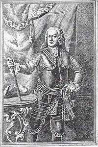 Antonio de Villarroel y Pelaez (1656, Barcelona 1726, A Coruña) was a Spanish military commander in the service of Philip V until 1710 in the War of the Spanish Succession. After the disgrace of Philippe II, Duke of Orléans, under whom he served and who plotted to replace Philip V, he switched to the Habsburg cause of Charles VI, keeping his rank. In 1713 he was appointed general commander of the Army of Catalonia.[1]