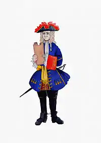 Actual depiction of Villarroel with his full militar suit which he wore during 1713-1714 campaign as a chief of the Catalan army.