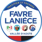 In the 2018 general election VdA, also known as Tradition and Progress (Tradition et progrès–Vallée d'Aoste, TP–VdA), was composed of the UV, the UVP, the PD and the EPAV, as the regional government.[22] The candidate for the Senate was Lanièce (UV), that for the Chamber Alessia Favre (UVP).[23] Lanièce was re-elected to the Senate with 25.8% against 23.2% of his closest opponent, Luciano Mossa of the Five Star Movement (M5S), while Favre obtained 21.7% of the vote and that was not enough to beat Elisa Tripodi of the M5S, who was thus elected to the Chamber. It marked the first time that a candidate not supported by a regionalist candidate won.