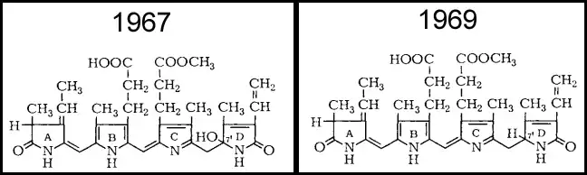 7. RÜDIGER, WOLFHART; CARRA, PÁDRAIG Ó; HEOCHA, COLM Ó (September 1967). "Structure of Phycoerythrobilin and Phycocyanobilin". Nature. 215 (5109): 1477–1478. Bibcode:1967Natur.215.1477R. doi:10.1038/2151477a0. ISSN 0028-0836. PMID 6052748. S2CID 4221727.
