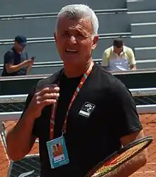 Tsitsipas married the tennis player Julia Salnikova in 1991 after meeting her while working as a line judge at a Women's Tennis Association (WTA) tournament in Athens.[4][5] He traveled with her on tour, then studied tennis coaching in Vienna and Berlin for several years, before moving back to Athens to work as a tennis instructor.[3] He and Julia trained Stefanos, their first child, from the age of three.[3] As Stefanos began to find success as a junior, Tsitsipas left a high school teaching position to travel with his son full-time from age 11 or 12.[3][6][7] He played occasionally on the ITF Seniors Tour from 2003 to 2010, achieving a peak ranking of No. 310 in 2006.[8] He served as the captain of the Greek contingent at the ATP Cup (2020–2022).[9]