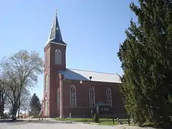 The settlement's first Catholic church, named St. Joseph and built in 1828, was used for 12 years; then a second church - called the Rock Church - was constructed. From 1881 to 1884, a new brick church was constructed for the St. Joseph parish. A rectory (1904) and convent (1917) were subsequently built as well.[7][8] Our Lady of Saint Joseph shrine was built in 1857 and incorporates a cave spring with stonework and the via doloroso walkway.