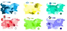 | Silistra | 29.31% | 12.01% | 13.39% | 27.12% | 3.49% | 2.87% | 3.84% | 7.97% |