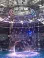 Since partnering with Epson and Maxell, aquariums have incorporated projection mapping into entrance hall and dolphin shows.[17] The Stadium has 1,350 seats, and there are shows by Pacific white-sided dolphins, bottlenose dolphins, and false killer whales that make full use of technology such as water curtains. [18][19] Also, the dolphin show at The Stadium is different day and night.[20]