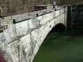 This aqueduct, made of local limestone, was damaged during the Civil War by Mosby's Raiders.[4]: 150 The stonework wall "went out" (as a boatman would say) three times: 1865, 1887, and finally in 1920.[2]: 79