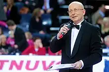 Arūnas Valinskas (born 28 November 1966) is a Lithuanian showman, TV producer, TV show host and politician. As the leader of the National Resurrection Party, he was elected to the Seimas, Lithuanian parliament, in the 2008 Lithuanian parliamentary election. Valinskas is married to a Lithuanian singer and TV show host Inga Valinskienė and has two sons Arūnas and Šarūnas. In 2002 he was granted a master's degree in law at Vilnius University.