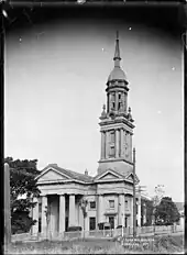 Clark established a drapery store in Shortland Street in 1850[2] and initially imported, but later manufactured clothing.[3] In 1856 or 1857, his son James became a partner in the business, which became known as Archibald Clark and Sons.[2] The company became quite large, at one time having 500 employees.[1] Their building on the corner of Wellesley Street West and Elliott Street in the Auckland CBD, built in 1910, is registered with Heritage New Zealand as a Category II heritage structure.[6] The company ceased trading in 1928.[7]